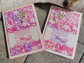 Digi (nagrada pri CRAFT-alnici) sem barvala s suhimi akvarelnimi barvicami, dodala wings of stella bleščice ter vse skupaj nalepila na ozadje pripravljeno z distressi preko stencil šablone. Priznam, da mi je barvanje te mavrično nagajive voščilnice za soseda, prav polepšalo dan :).